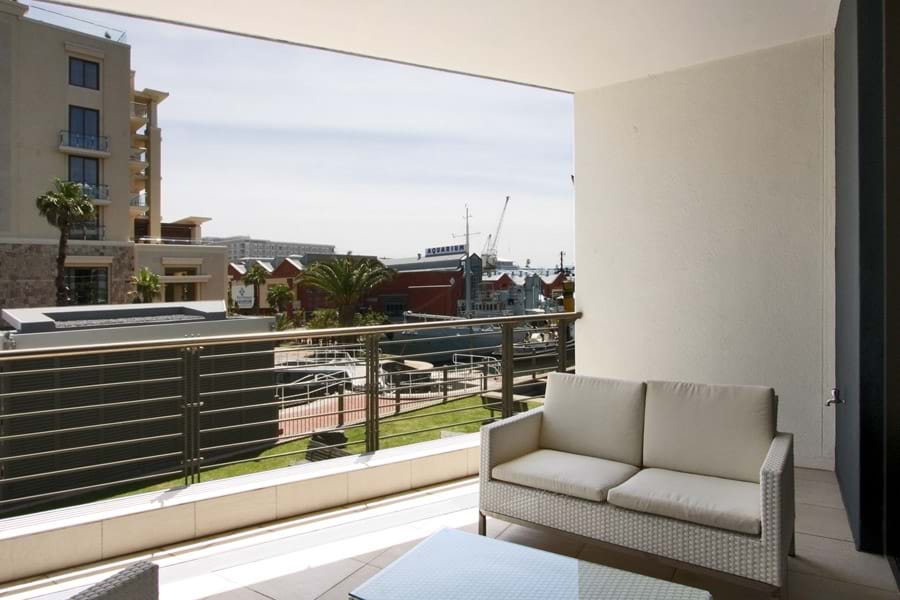 The balcony, with its lovely furniture, gives you the perfect vantage point for views of the gateway to the canals, the Waterfront, aquarium and working harbour.