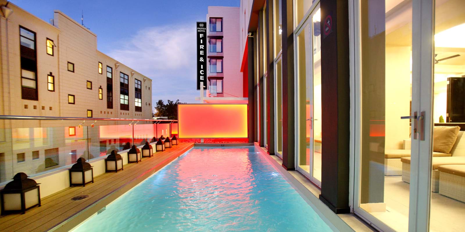 Protea Hotel Fire & Ice! has upped its standards and its facilities. More rooms, an extraordinary pool deck with an inviting lap pool, a relaxation area, a gym and conference facilities, all ready for your enjoyment. Look around – you’ll find the ultra-chic lighting, music to suit the mood, trendy decor and coffin seats in the smoking room – see what other surprises we have in store for you.