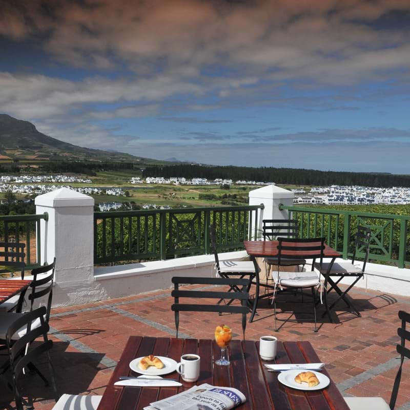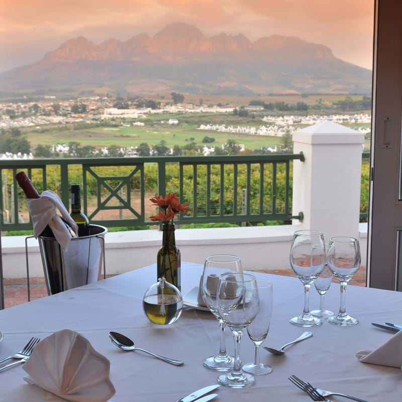 With a 360° view of Table Mountain, the Helderberg, Stellenbosch vineyards and the De Zalze Golf Estate, the hotel offers two restaurants, swimming pool and picnic facilities.