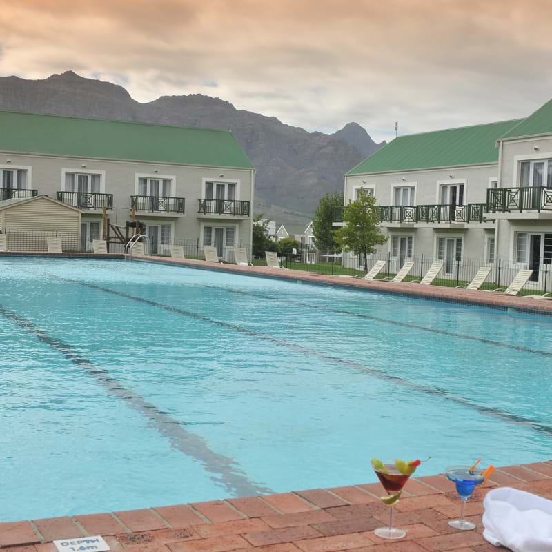 Nestled between two international golf courses, this 180-bedroom hotel offers all GUESTS the best of the Winelands. Accommodation is available in Executive, Deluxe and Standard Twin rooms, where Deluxe and Standard rooms configure to a two-bedroom apartment ideal for families and groups. Executive rooms are fitted with plasma screen television and mini kitchenette designed with the Executive traveller in mind.