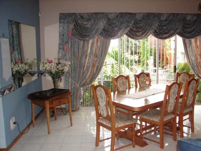 SSecure parking. Safe area. Breakfast included. Sunny rooms. Full DSTV, Bar fridge, Aircon/Ceiling fan. Bathroom en suite.Close to the highway.