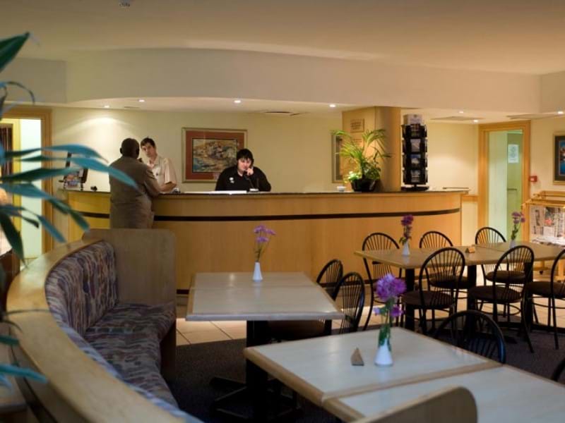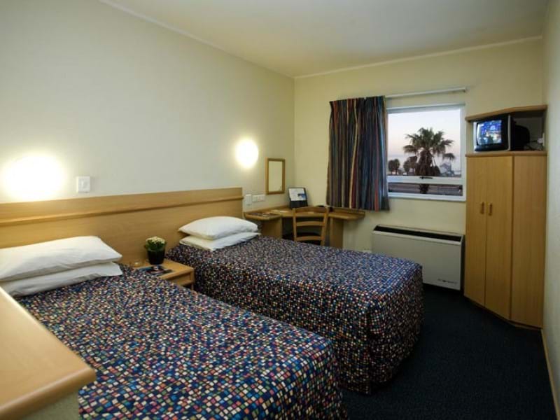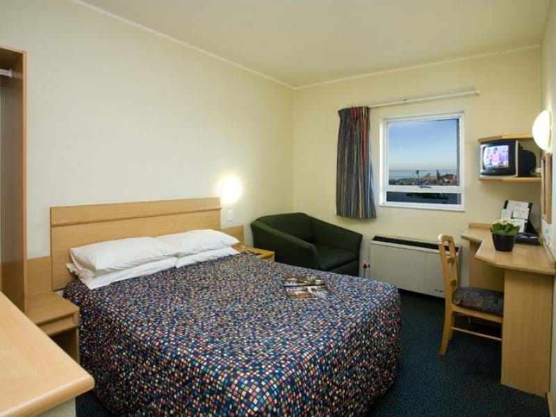 The rooms are fully-carpeted, air-conditioned and have colour televisions and radio stations, and feature en-suite bathrooms with shower, toilet and hand basin. The hotel has a choice between double or twin beds, with single sleeperchairs available in selected rooms. One in fifty rooms is designed to meet the special needs of the physically disabled. The hotel serves a light breakfast daily, and has a 24 hour vending machine stocked with snacks and beverages. There is a 24 hour reception service, ample and secure parking, a payphone and wireless internet access in all commercial areas.