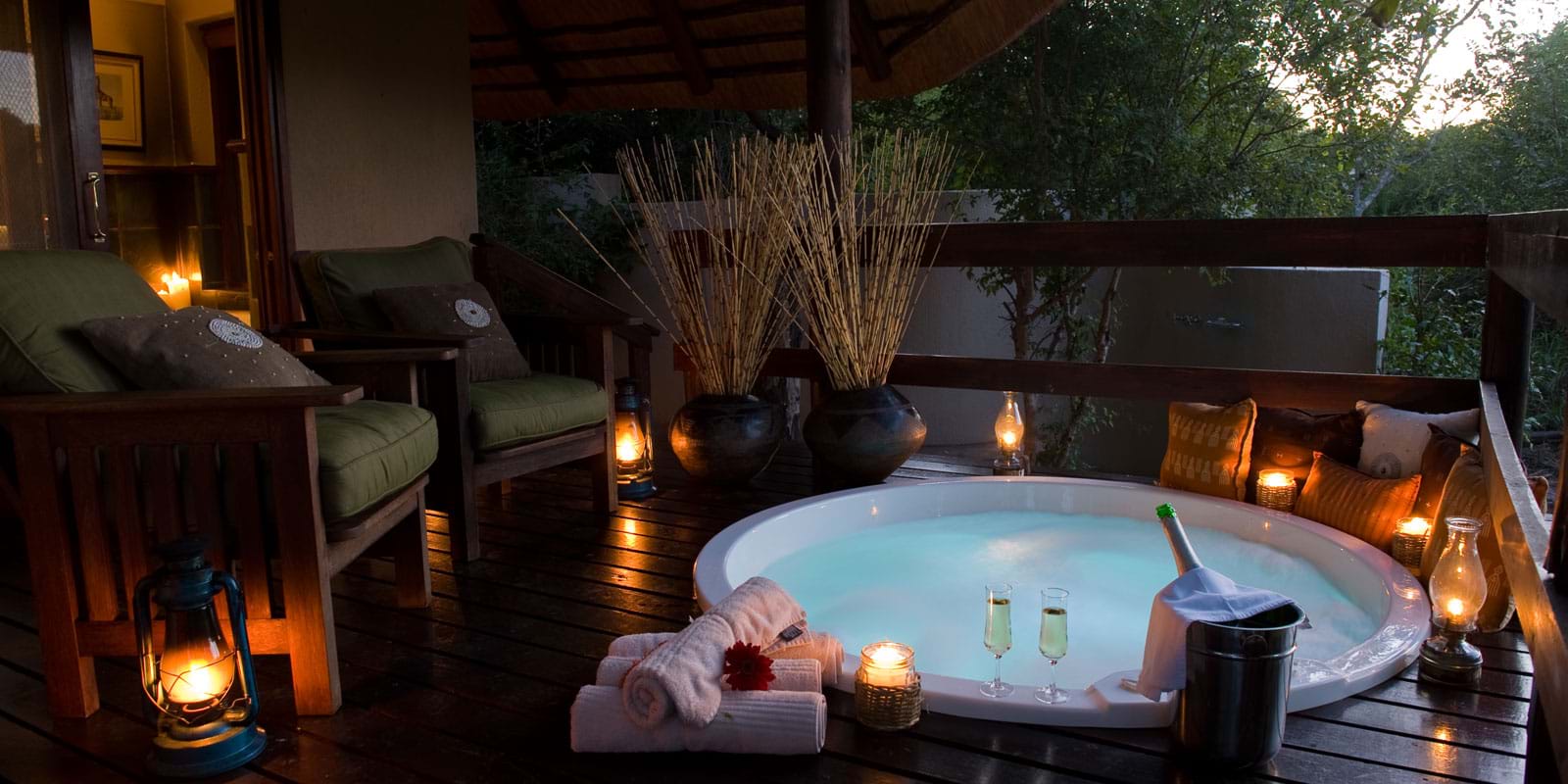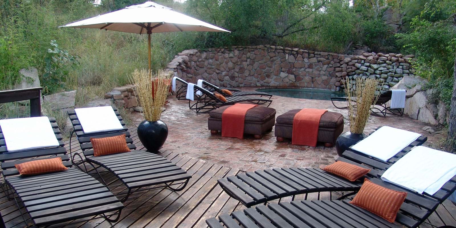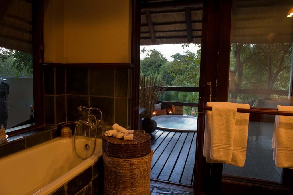 Each thatched suite is individually styled with a king-sized designer bed, draped mosquito nets, genuine African artefacts, wooden finishes and creative use of colours, textures and light. Luxurious en-suite bathrooms feature both indoor and outdoor showers; and private viewing decks are perfect for observing the unspoilt bushveld and its abundant wildlife.