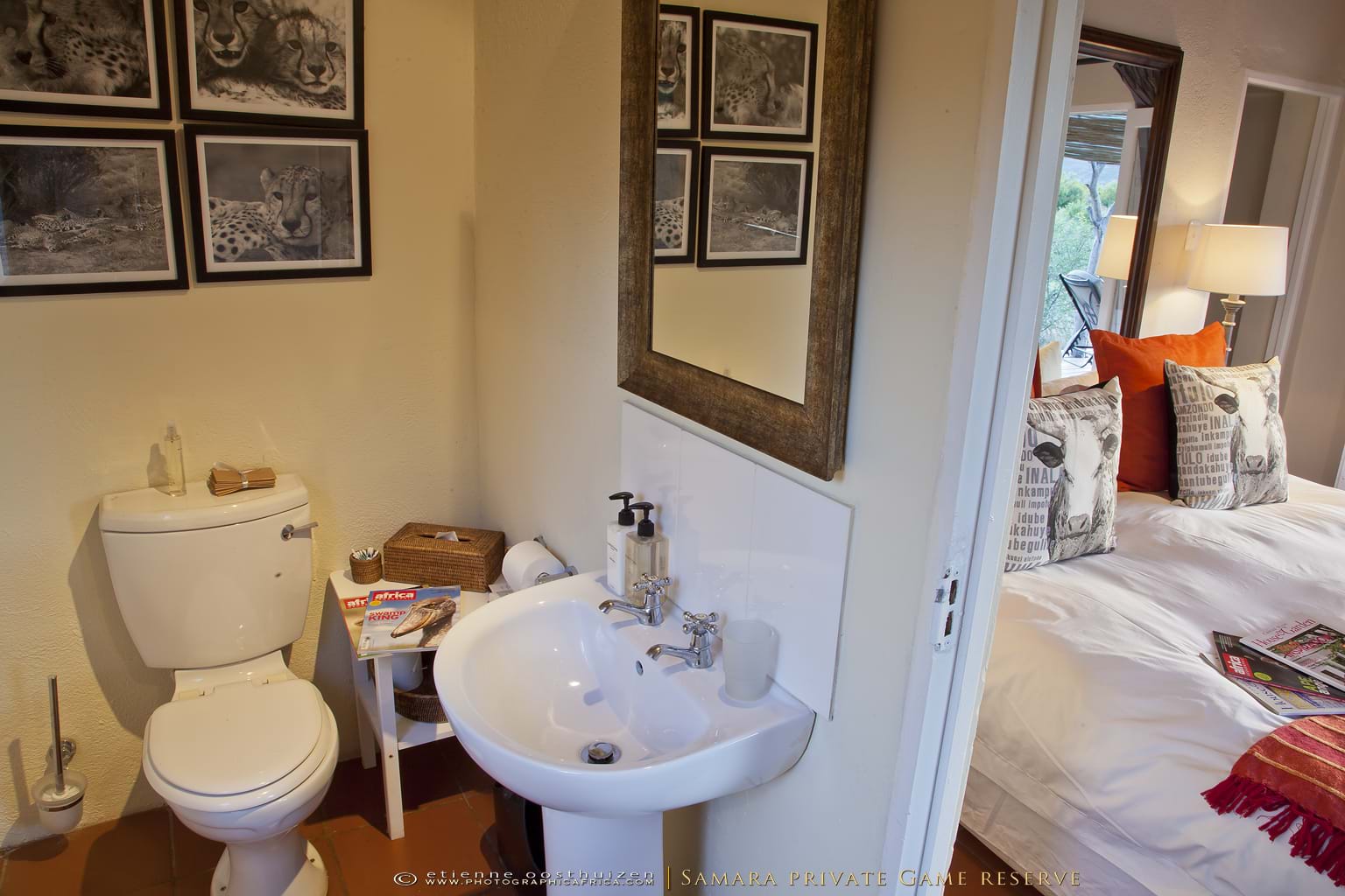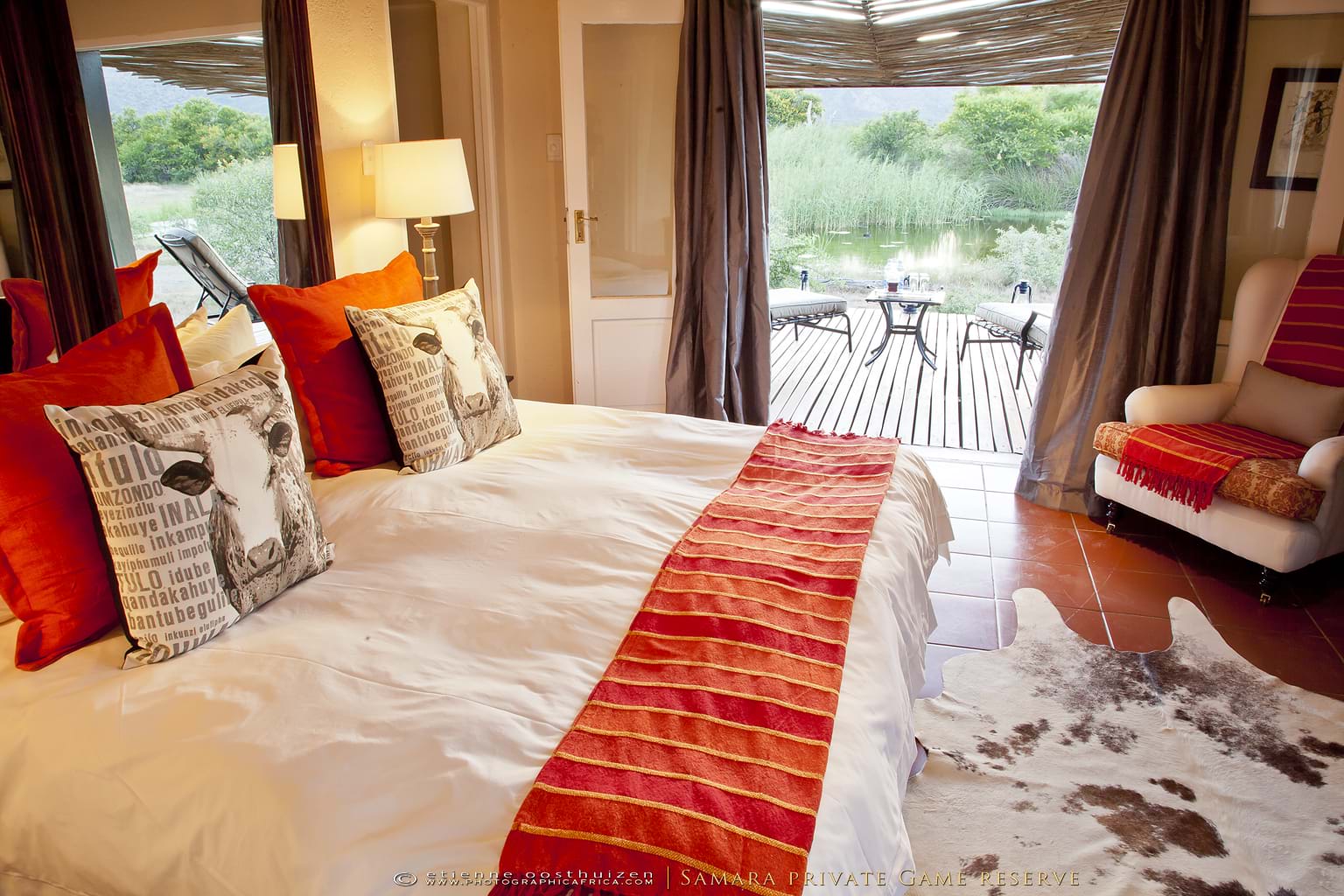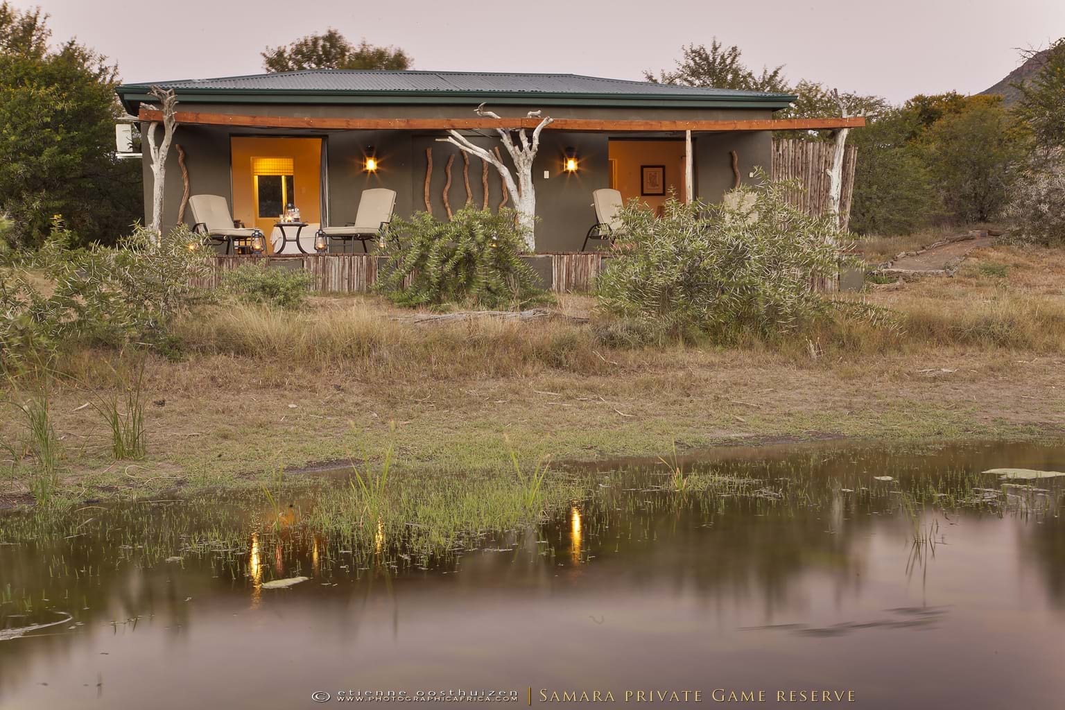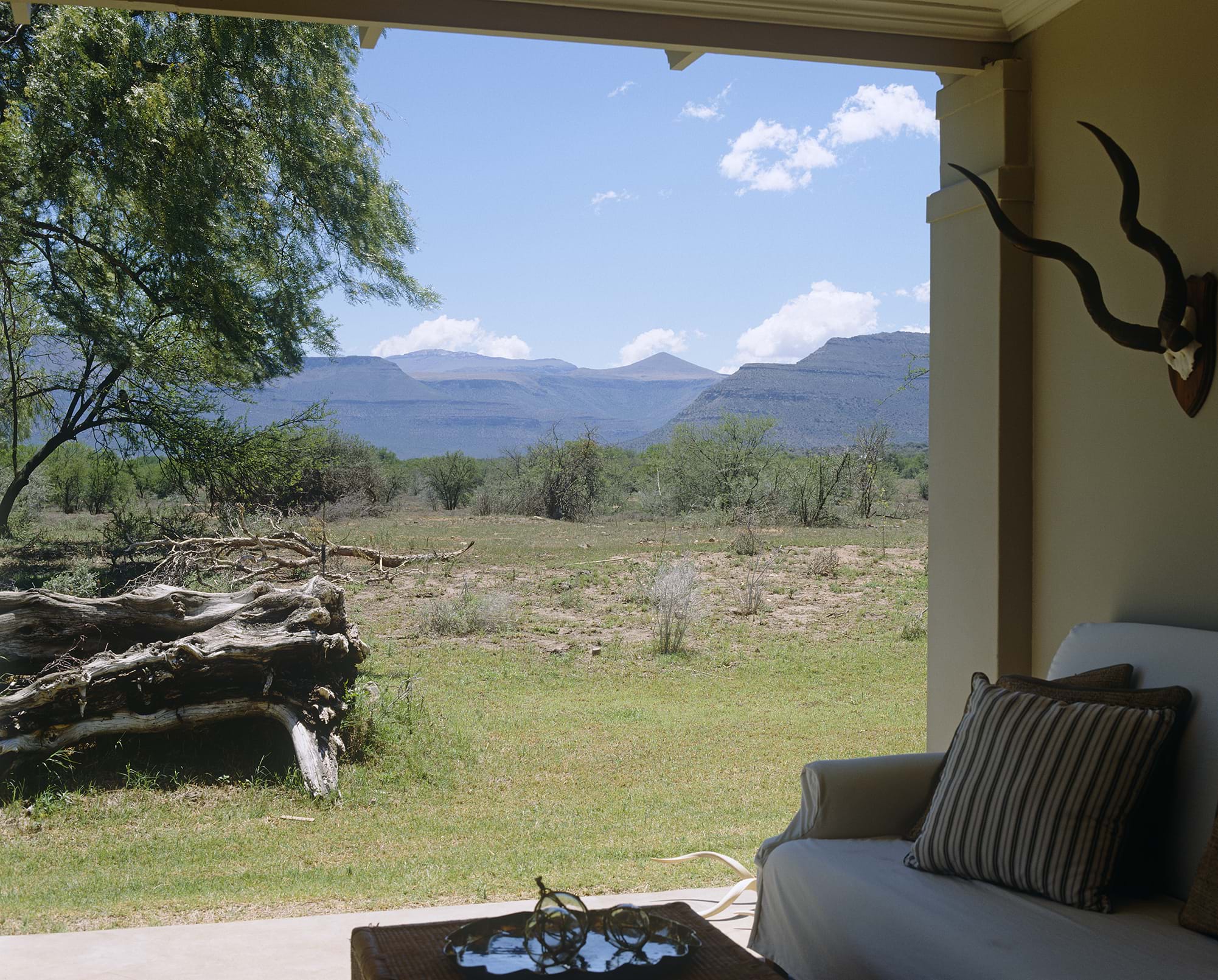 SSurrounded by a natural amphitheatre of mountains, Karoo Lodge sits in perfect serenity in the reserve’s pristine wilderness. Combining colonial comforts with the essence of Mother Nature, the lodge treats you with exceptional service, enabling you to relax and allow the tranquility of the Karoo to envelop your soul.If you choose, you can leave the game for another day and indulge in the luxury of your suite and let our experienced therapist ease your stress away with her aromatic oils and local charm.Three Lodge Suites are situated in the main homestead and are light and airy, all opening out on to the wide wrap-around veranda. Each has a luxury en-suite bathroom and is air-conditioned.The three Karoo Suites are individual Karoo style “cottages†in the garden and are larger than the Lodge Suites. Each has a luxury en-suite bathroom, is air-conditioned and has a fireplace. Refresh yourself in the outdoor shower while gazing at the magnificent views.