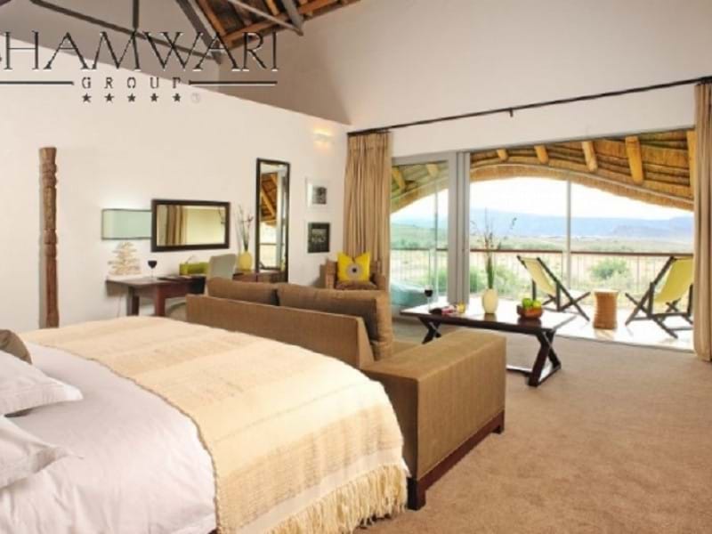OOverlooking Bellair Dam and resembling a typical thatched Karoo homestead, offering 12 generously proportioned luxury suites, each with endless views over the plains, Anysberg-mountains and beyond. Children of all ages will be entertained with an exciting “Kids on Safari†program. Suite Features: Air conditioning, Under floor heating, Private minibar, Private deck or balcony, Tea and coffee making facilities, Electronic safe, International dial telephone, En-suite bathroom with shower, free standing bath and twin basins.
