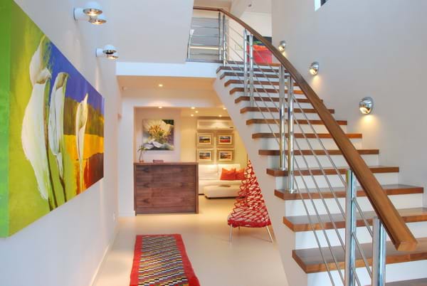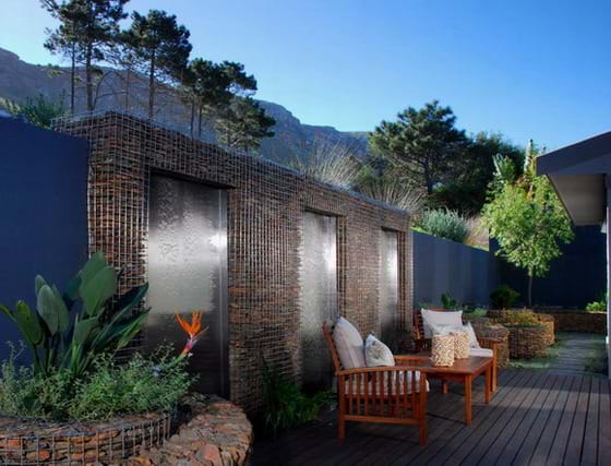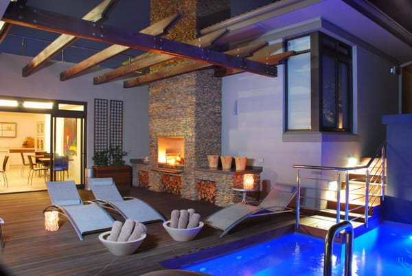 SSellkirk House is a contemporary fully automated guesthouse offering every possible luxury to the discerning guest. On all sides, large glass sliding doors open onto stone and wooden terraces. Close by the splash pool with its tumbling water feature is the Karoo-stone barbeque area. From the bar lounge steps lead to a rooftop deck with all-round views of the mountain and the sea. There is a well-stocked library and a temperature-controlled wine cellar offering guests some of the best locally produced wines. Intimate dinners can be served on request.