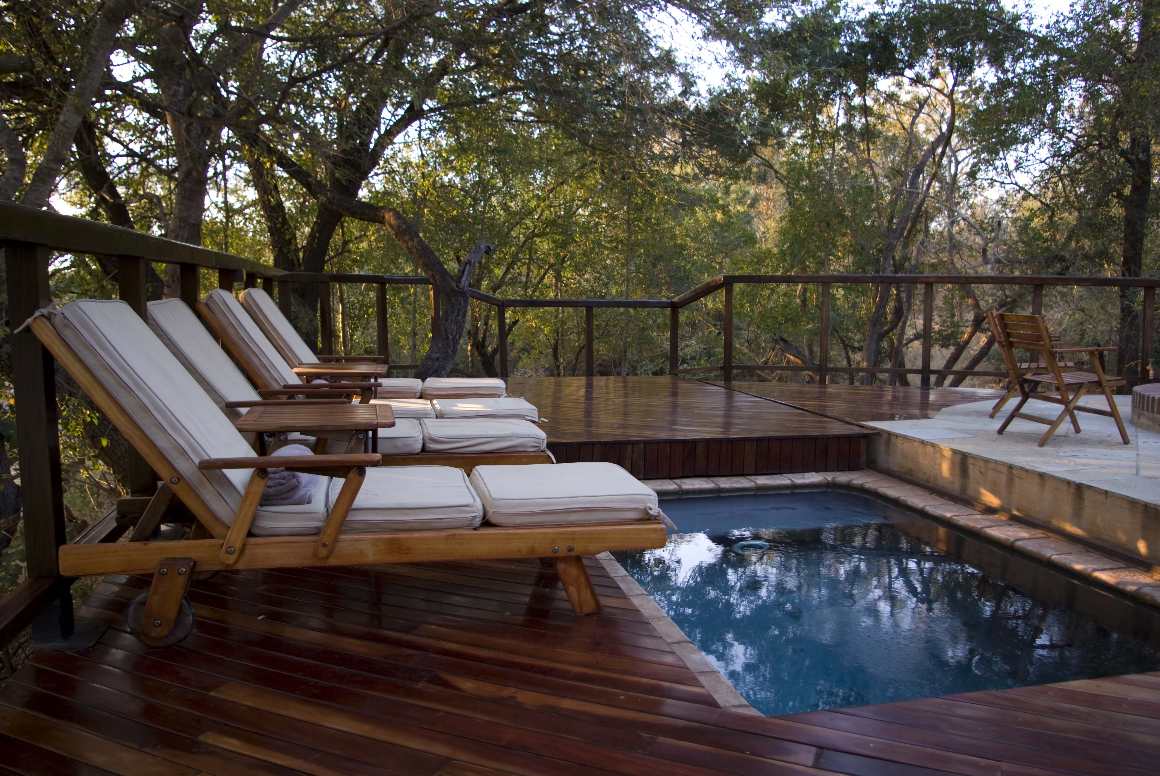 In addition to the game viewing decks and swimming pools, there are two lounges, a curio shop, underground cellar where dinner can be enjoyed and library in which to relax between game drives.