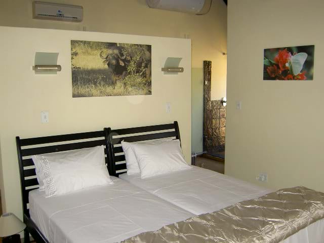 WWe can offer you a luxury safari house, en-suite with bathroom, living room and kitchen. All units also have self-catering facilities, tea/coffee facilities, TV with selected DSTV channels and Internet connection.