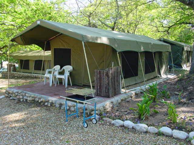NNestled in the magnificent Slanghoek Valley lies the Slanghoek Mountain Resort. We have 8 fully equipped self-catering chalets from a two sleeper to a six sleeper, 6 of them with inside braais the other with a fireplace. We have 13 self-catering safari tents sleeping two or Two adults and two kids each with kitchenette corner, en-suite shower and toilet. We have two swimming pools, trampoline and jungle jim for the kids. All this is situated under a century old oak tree forest.