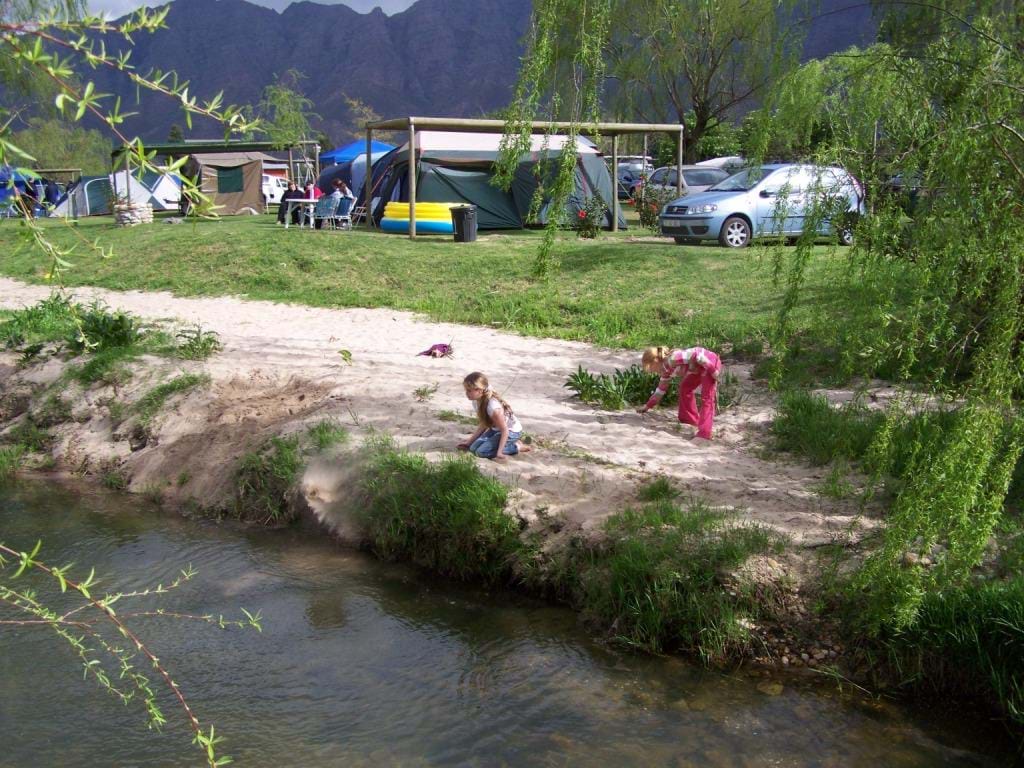 We have 15 grassed camp sites with a stream running through them situated between the vineyards on our farm about 600m from the rest of the resort. There is a swimming pool, trampoline, jungle jim. We have wooden huts each with a shower and toilet for each site.