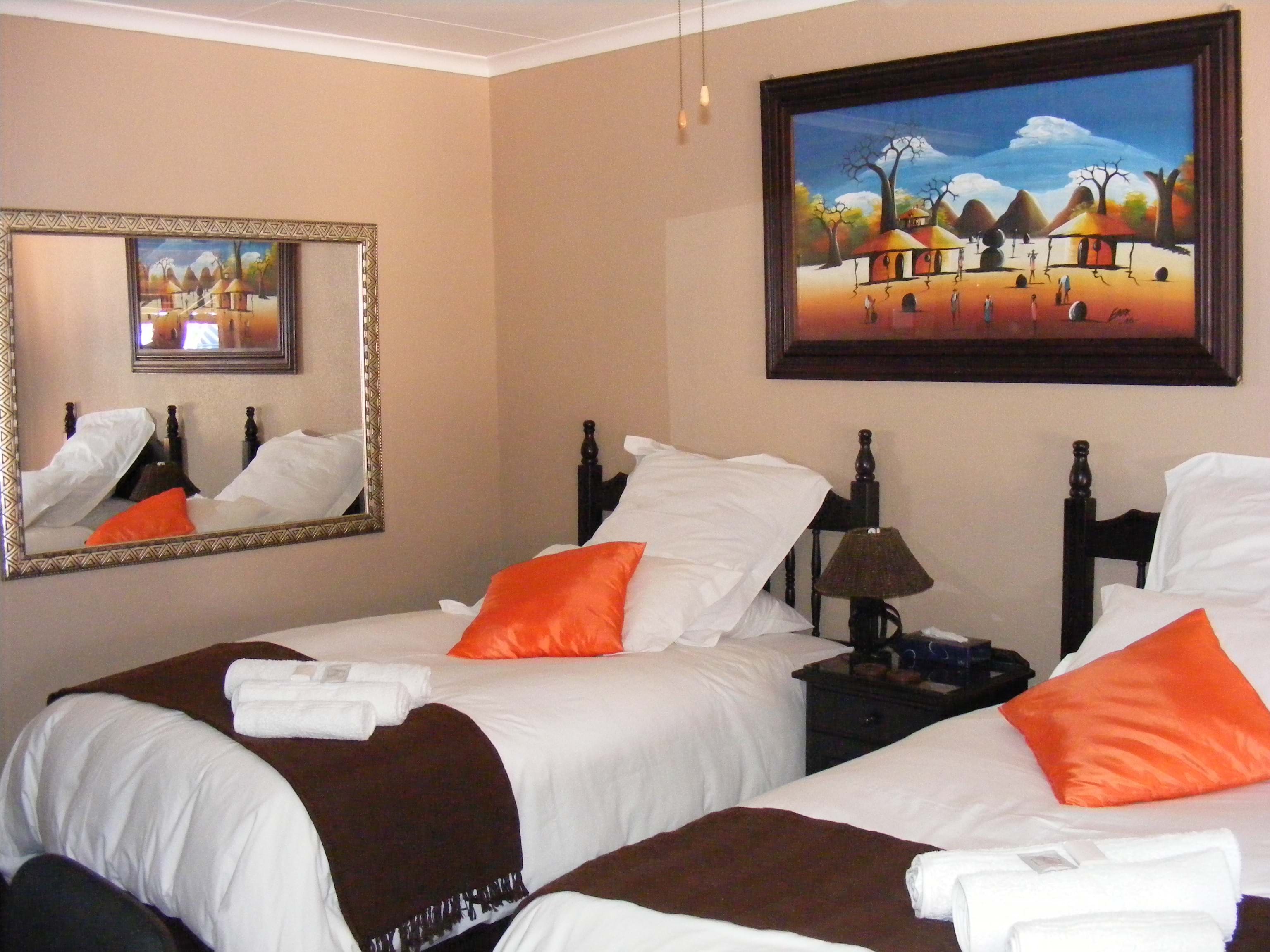 OOur Lodge is well established (since 1995), with a four star rating, situated on the boarder of Meyersdal/Brackenhurst in Hennie Alberts Street, Alberton. Our 25 units main en-suite (private entrances) are equipped with double or twin sharing beds, electric blankets, small fridge, heaters, safe, ceiling fans, internet access, desk and chair, TV’s (10 channels), coffee and tea facilities, microwave ovens and ample parking on the premises (with alarm systems and TV cameras to ensure safety). We also offer dinner, lunch, laundry and shuttle service on request. We have a very cozy bar equipped with all necessary beverages, pool table and dart board. Our breakfast is a full English breakfast, buffet style to ensure that nobody leaves the table hungry!