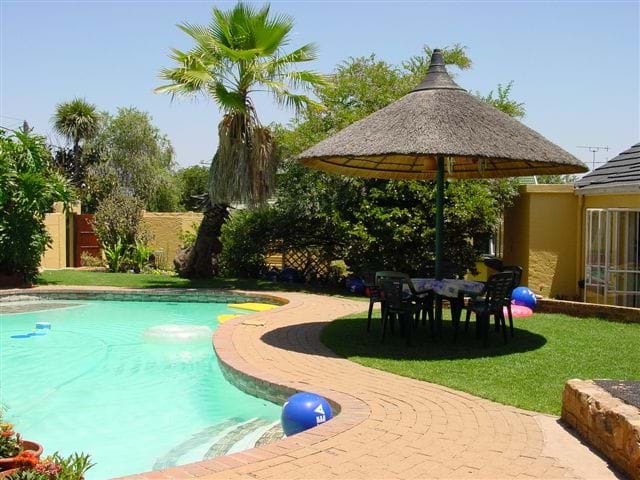 SStay-a-While Guest House has Ten spacious Suites set in secure, well lit gardens with off street parking, all behind electric fences. All suites have DSTV, clock radios and en-suite bathrooms with showers and/or baths & private access. We also provide a courtesy tray with Coffee, Tea, Sugar and creamers. All suites have kitchenettes with a fridge, microwave, kettle, toaster, crockery and cutlery. Breakfast is optional. Fax, Internet and wireless hotspot on site. Barbecue facilities & a big Swimming pool is available to our guests to relax and unwind, with ample space for privacy or company, as it suits you.