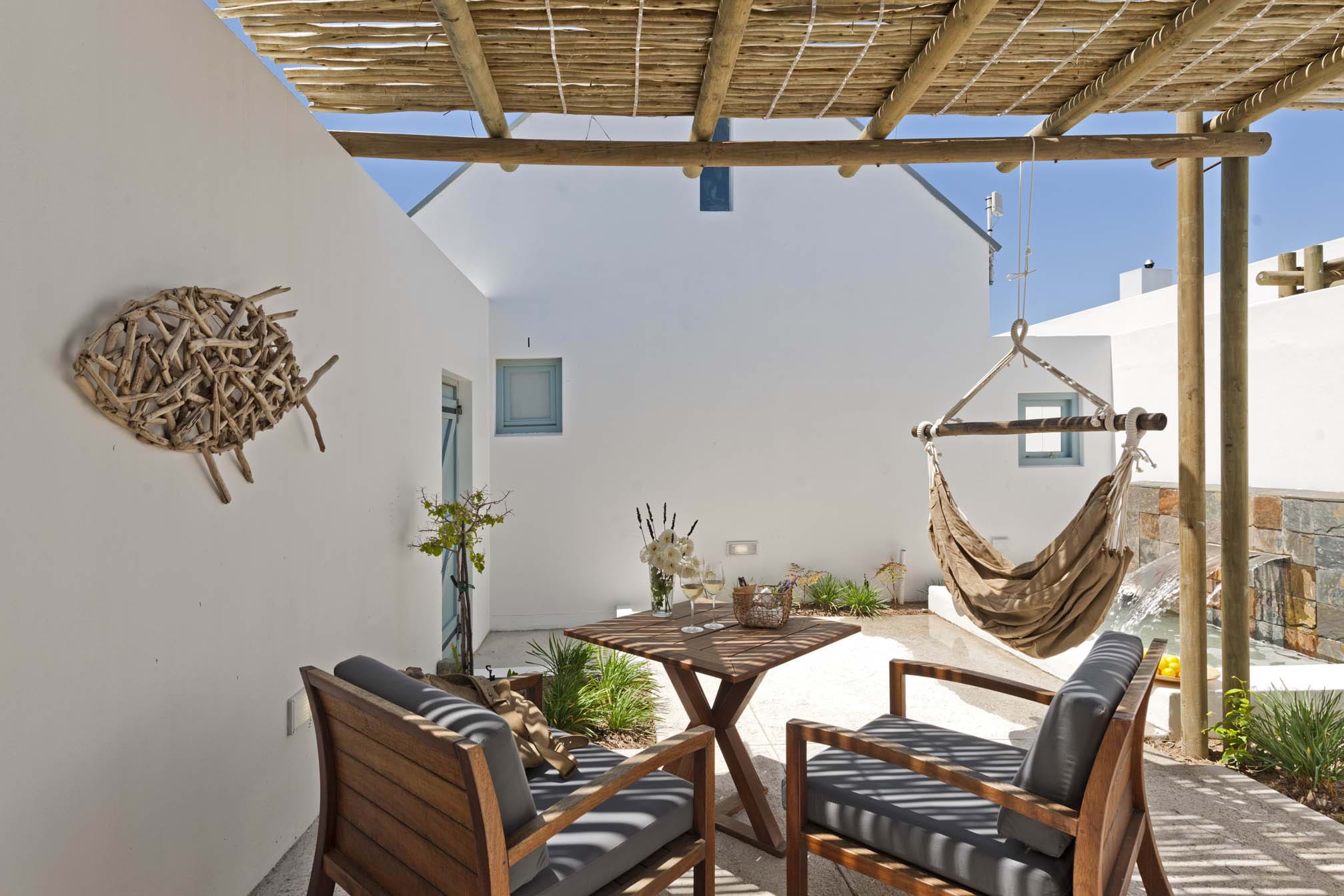 The 13 exquisite rooms and suites are a fusion of beach style and contemporary luxury; with organic lines, hues and textures and an overall feeling of simplicity. Each has its own terrace or courtyard, and wide doors that open out onto breathtaking views of sky, sand, sea and space.