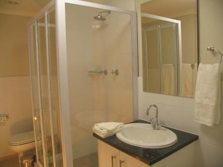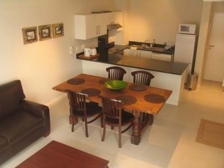 Empire 308 apartment has one bedroom with a queen-size double bed, en-suite bathroom with bath and shower, open plan lounge / dining room / kitchen and an east facing balcony. Enjoy breakfast on the balcony as the sun comes flooding into the courtyard. In the lounge is a double leather sleeper couch, thus the apartment can sleep up to 4 people.