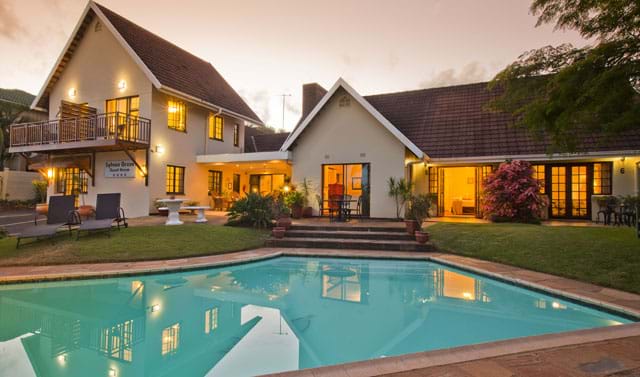 SSylvan Grove is a 4 Star & AA Superior rated Guest House situated in a quiet residential area of Umhlanga Rocks, with a tropical garden, inviting swimming pool and prolific bird life facing the Indian Ocean. Our twin rooms have en-suite bathrooms, air-conditioning, ceiling fans, hospitality tray, hairdryers, mini bar, safes, telephones, free Wi-Fi & satellite TV.