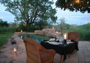 Set in the malaria free Madikwe Game Reserve the lodge overlooks a very active waterhole where all of the Big 5 and more regularly come down to drink.