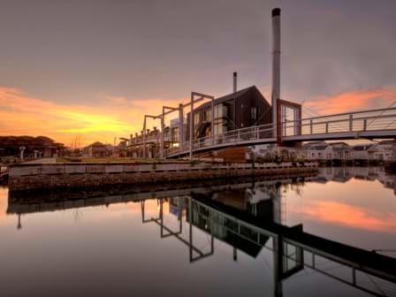 AAs recent as 50 years ago, Knysna’s power was derived from a wood fired turbine, and ironically this power station was and remains a part of arguably the finest location along the garden route. Thesen Island as it is called is home to a collection of up-market homes linked to each other and the Knysna lagoon through a series of water ways. Several years ago an ambitious project to transform the power station into a boutique hotel began, the result of which is breathtaking in its ‘industrial’ mystique. Given the heritage status of the power station, most of the primary components were left in position and now form an integral part of the theme of the hotel.