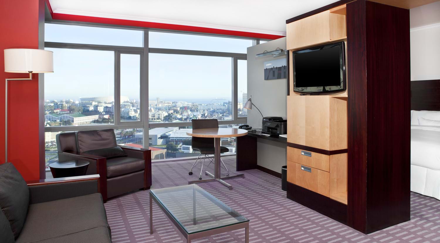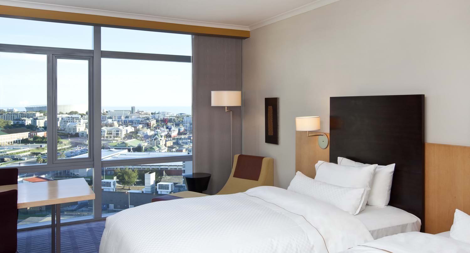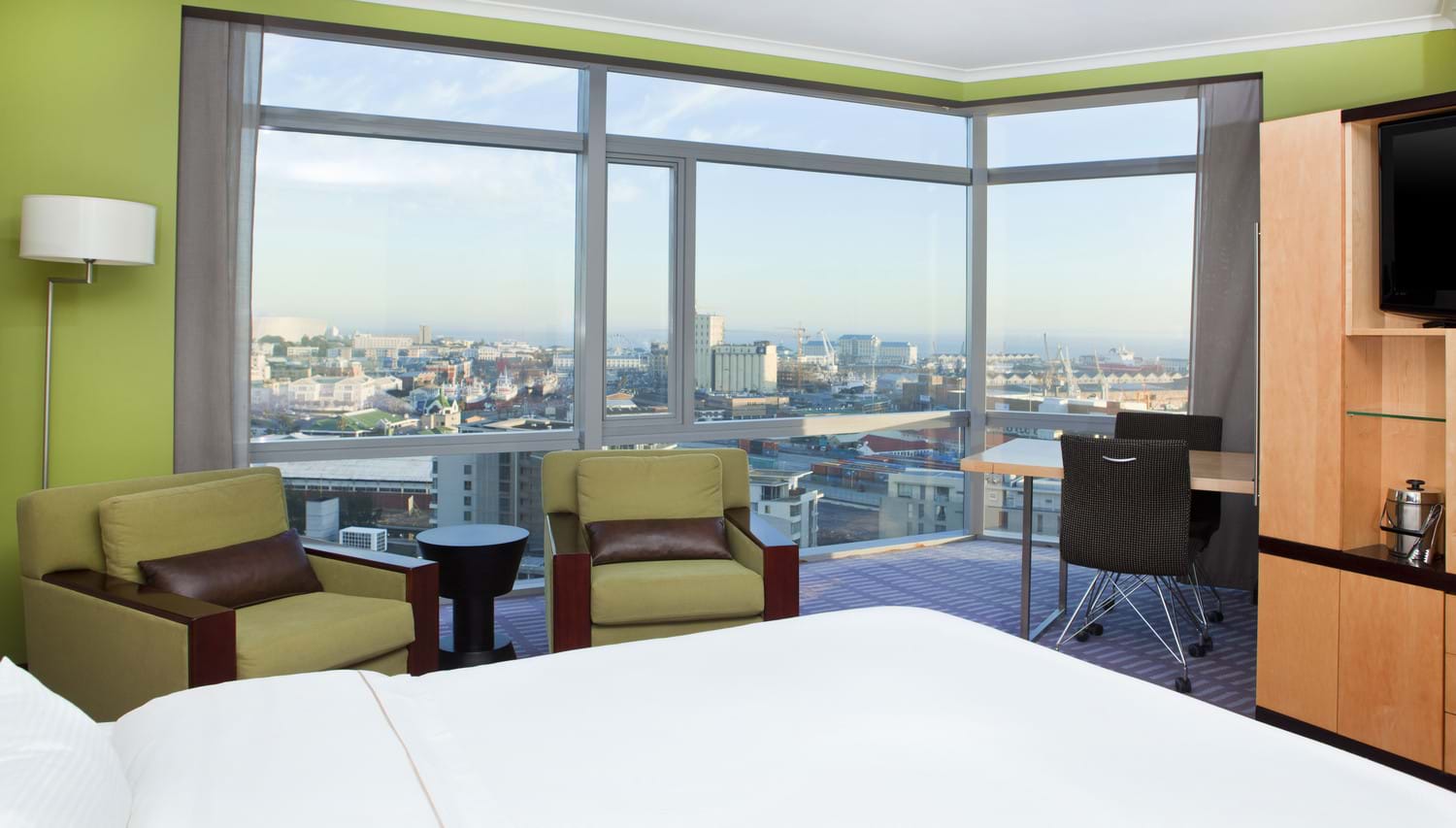 Guests are welcomed by warm, spacious rooms – finished in bursts of African colour and inspired by the burnished landscape of the Winelands. Most of the 483 rooms and suites offer floor to ceiling panoramic views of the city, Table Mountain, and the famed working harbour.