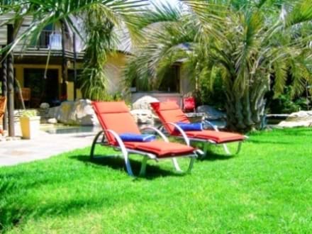 The Thulani River Lodge is surrounded by 8000 m² of beautiful garden, through which a small romantic stream stretches. The centrally located guesthouse impresses with its thatched roof, its modern African ambience and its superb outdoor swimming pool made of natural rocks.