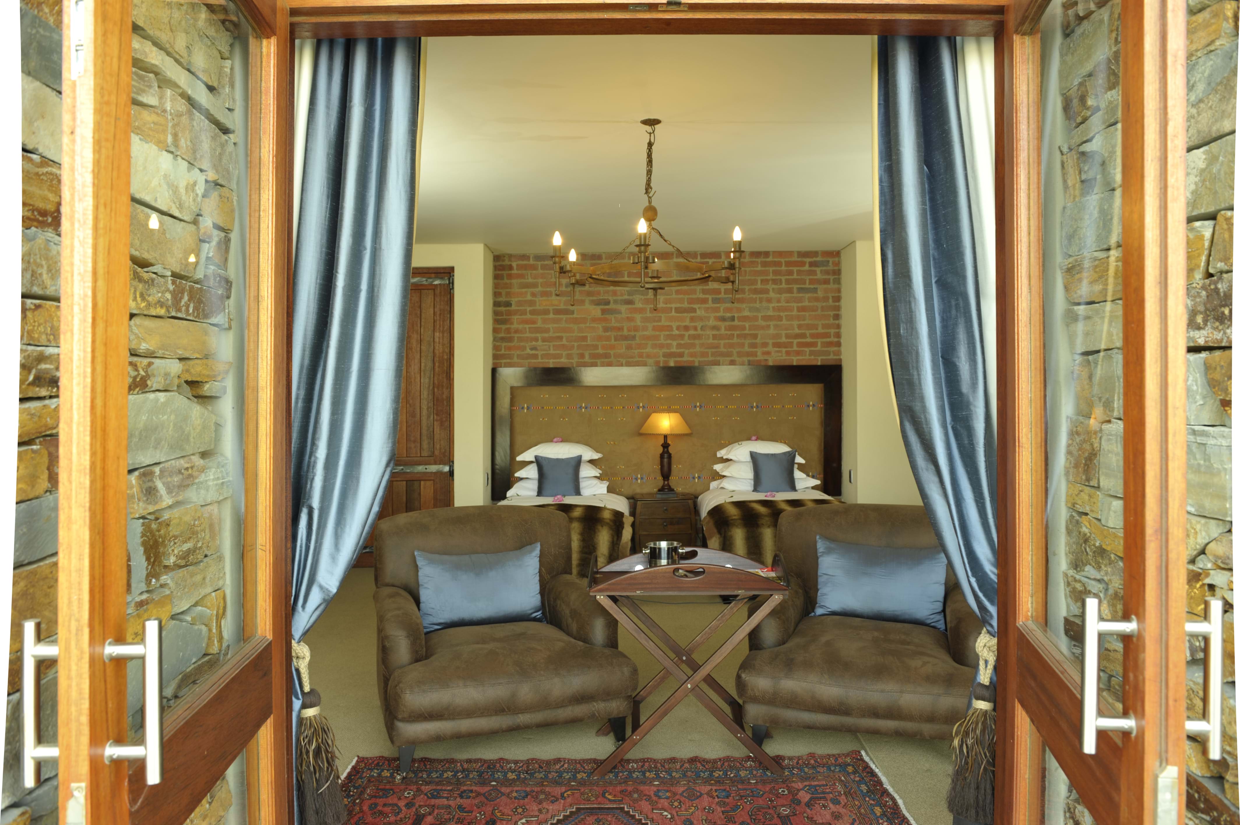 This boutique destination has a spectacular 360° degree view and is designed as a typical barn, with thick stone clad walls, double volume spaces and heavy bolted timber roof trusses. The 16 luxury rooms look out over the pristine polo fields, the estate dam and have superb views of the distant Magaliesberg Mountains and surrounding countryside.