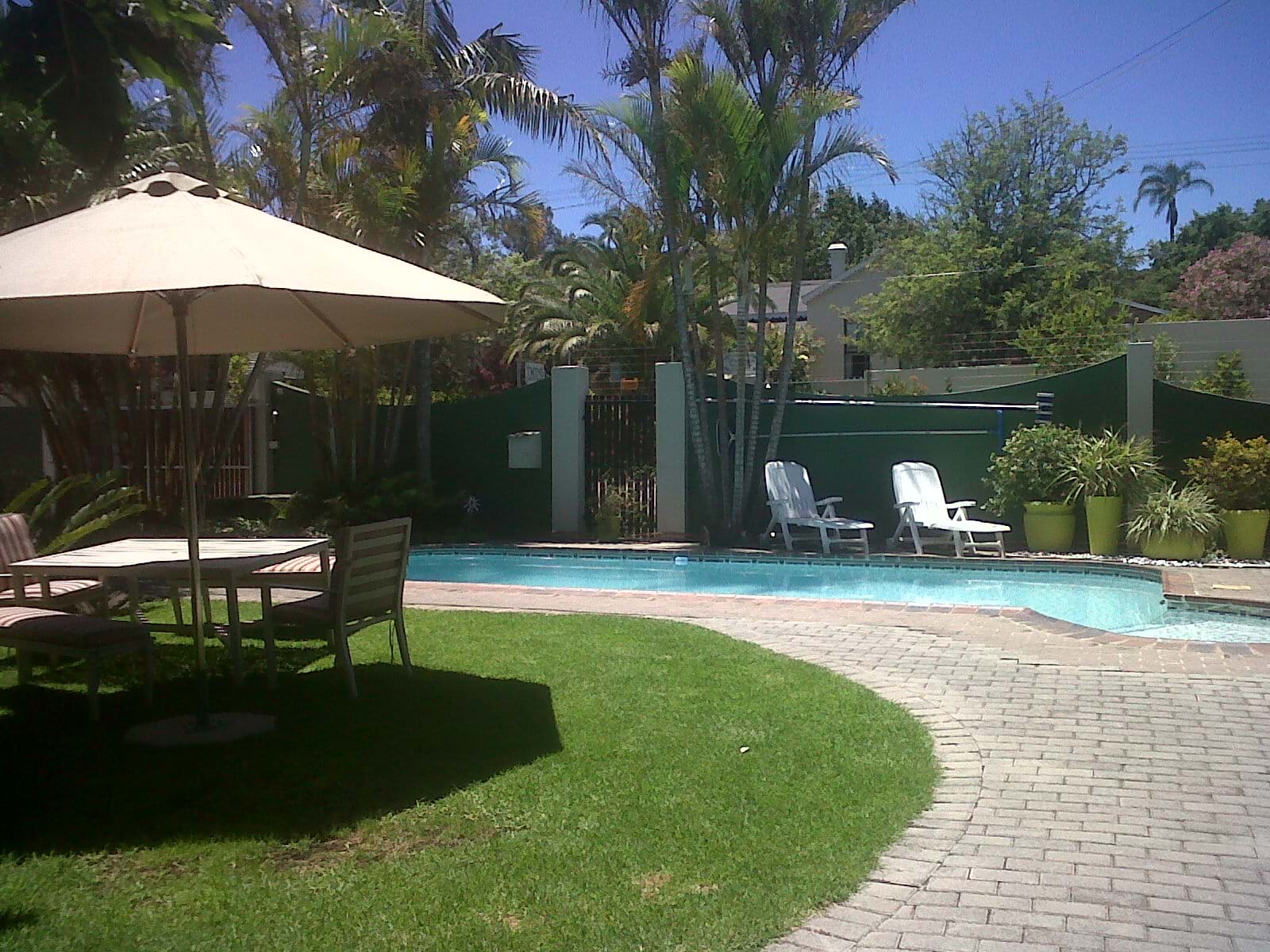 AAll rooms en-suite with private outside entrances. Safe inside parking available. Coffee station, DSTV, bar fridge, microwaves, safes and aircons in all rooms. Braai facilities and sparkling pool in a lovely garden.
