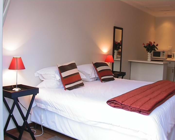 One double bedroom with king size bed (or two single beds), TV (M-net), DVD player, air conditioning, kitchenette with fridge, microwave oven to warm up pre cooked meals, two plate stove, toaster, electric kettle, cutlery & crockery, dressing room, en suite bathroom with bath & separate shower.