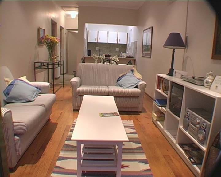 One double bedroom with king size bed (or two single beds), sleeper couch and air conditioning, lounge / dining room with TV (M-net) , DVD player, air conditioning, fully equipped kitchen, with microwave / oven combination, two plate stove, toaster, electric kettle, fridge, cutlery & crockery, bathroom with bath & separate shower.
