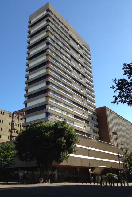 NNoswal Hall is a modern high-rise vibrant residence located just off campus on the corner of Stiemens Street and Jan Smuts Avenue in Braamfontein,Johannesburg opposite the Wits School of Arts.