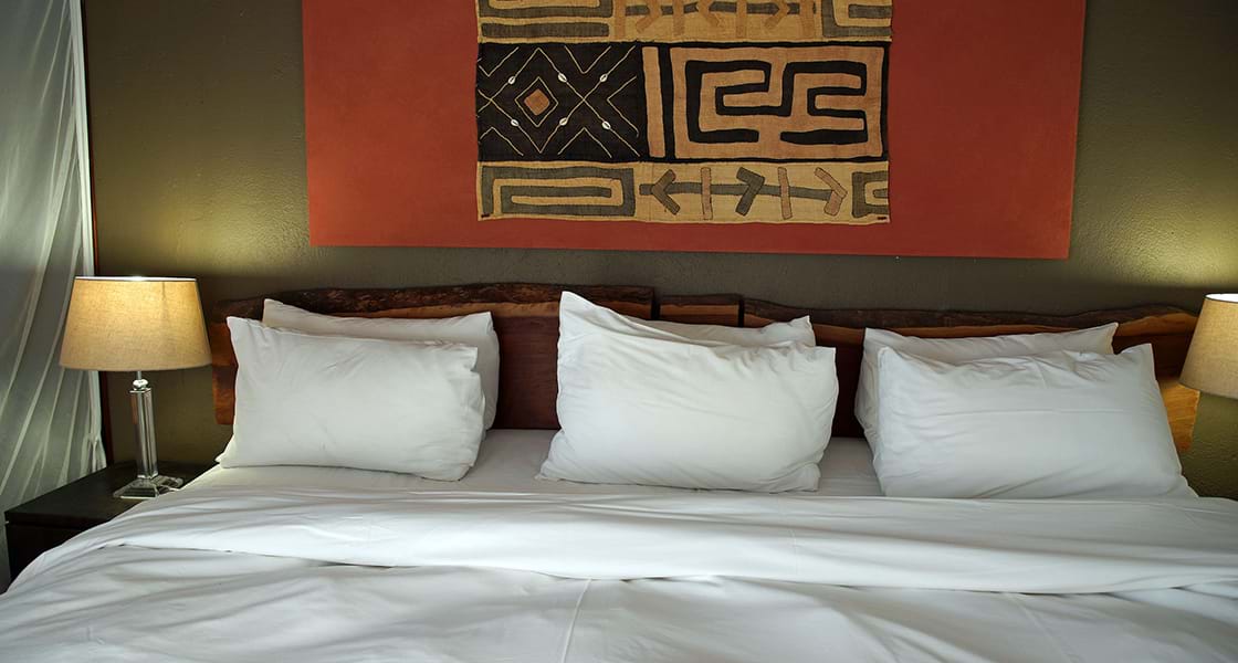The lodge boasts an outdoor dining boma (an enclosure), which provides guests with an ideal setting to sweetly repose around an open fire and enjoy a traditional African meal under glittering skies.