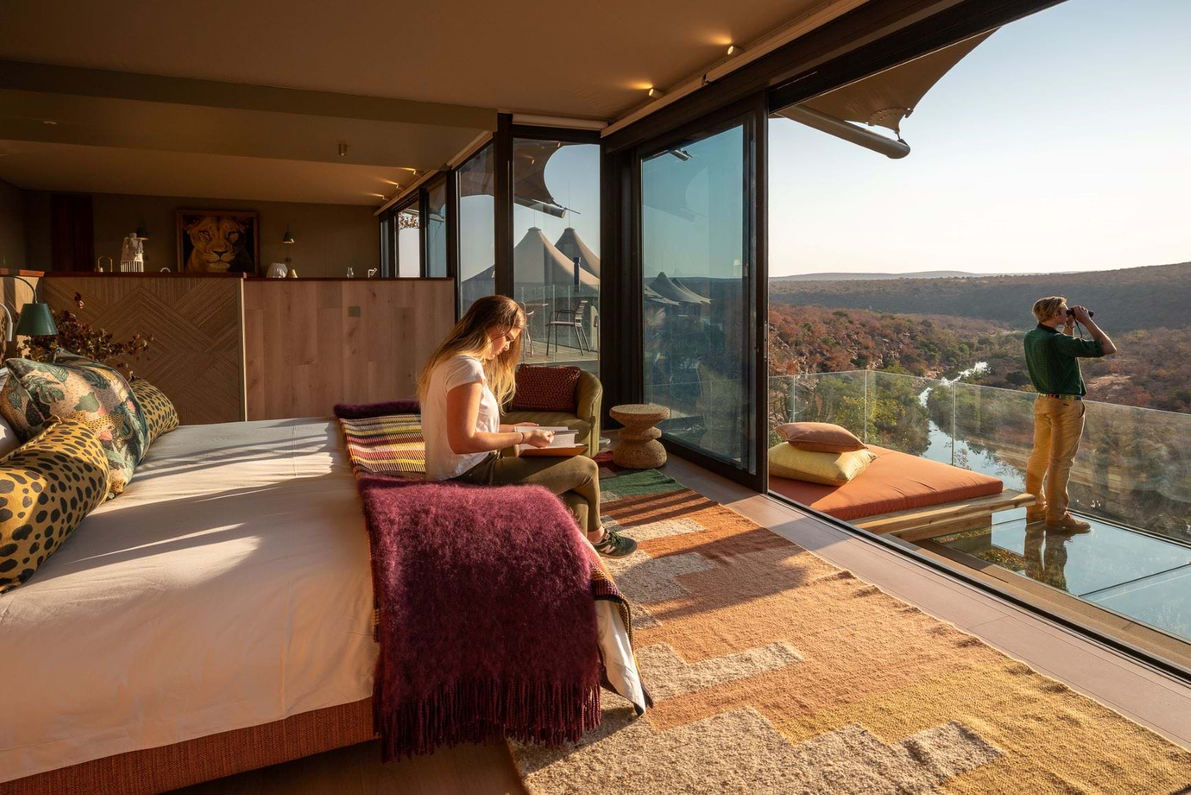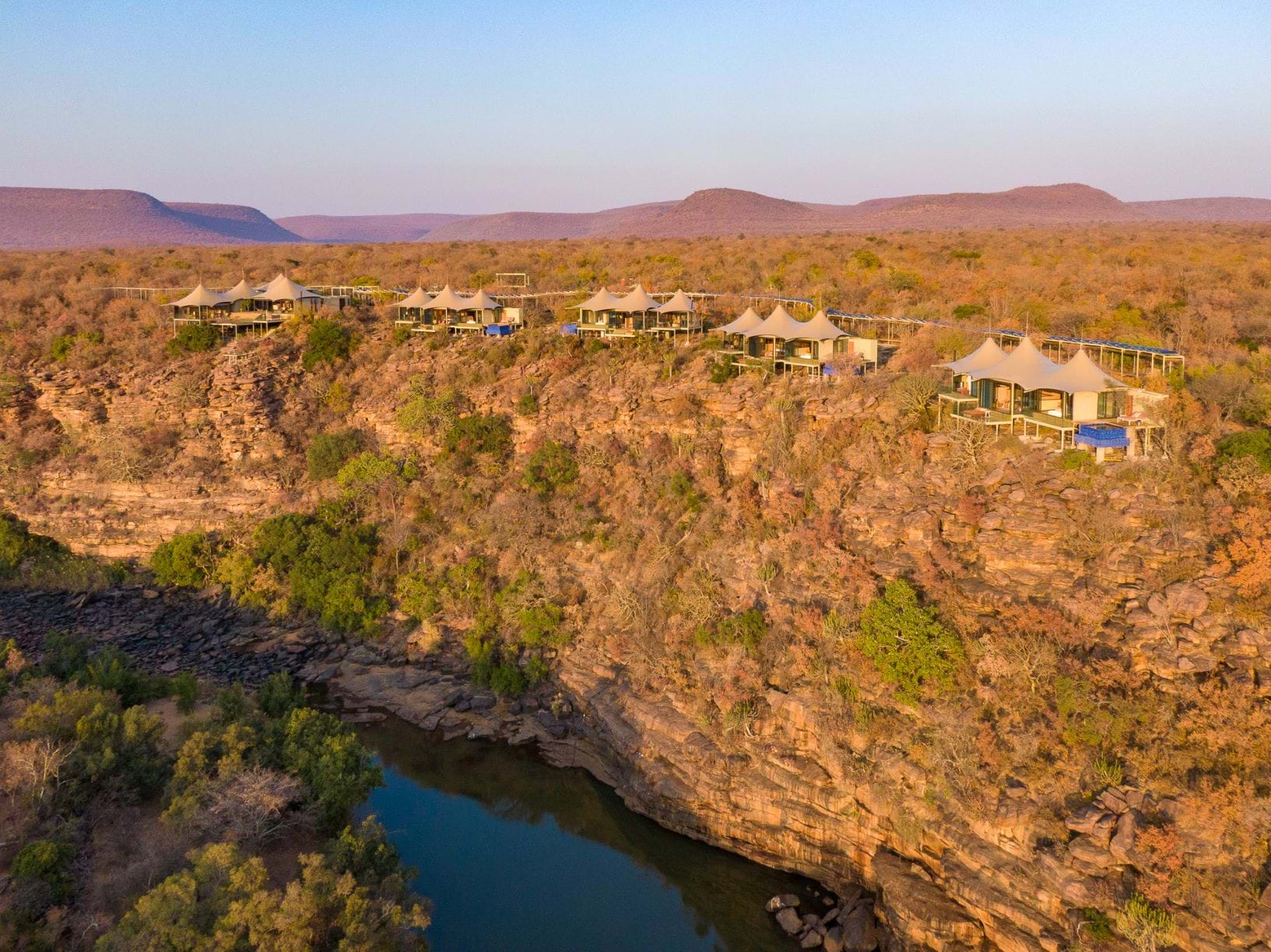 ZZittend op de top van een spectaculaire rotswand van 30 meter hoog met de kolkende Palala-rivier eronder, moedigt Noka Camp volledige rust aan met compromisloze luxe.