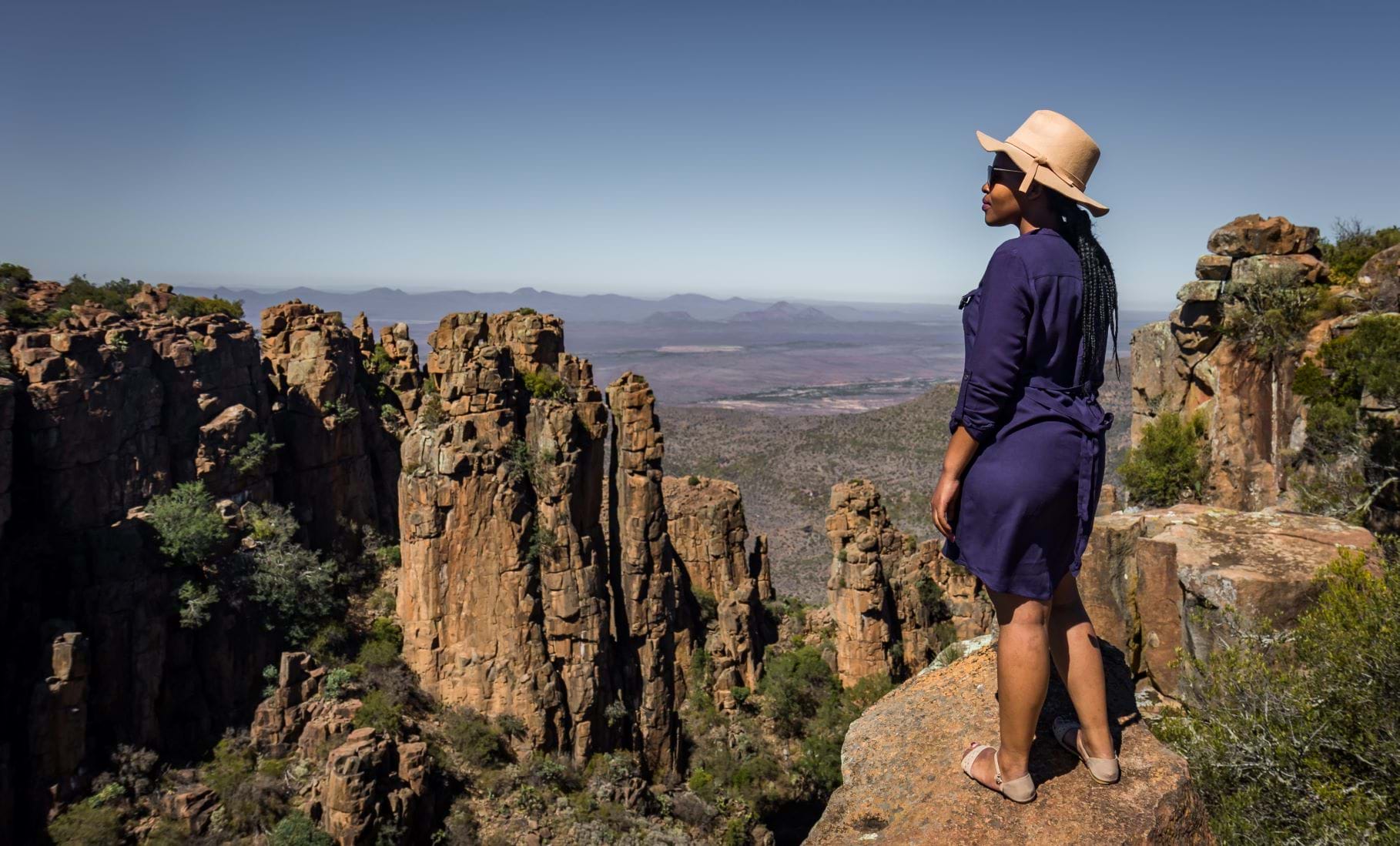 Wanneer je in de Valley of Desolation (de vallei der verlatenheid) in het Camdeboo National Park staat, omringd door gevaarlijk uitgebalanceerde doleriet pilaren die tot een hoogte van 120 meter reiken, kun je jezelf voorstellen dat je in Gods steengroeve staat.