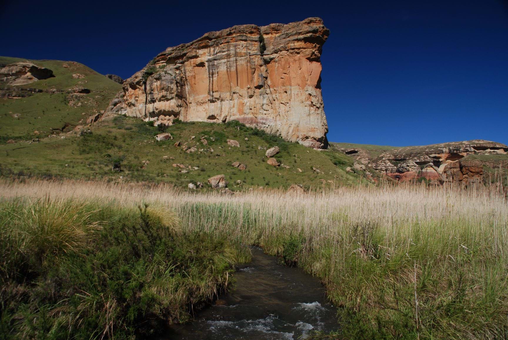 GGolden Gate Highlands National Park is zo’n 11.600 hectare en is echt een unieke omgeving in zijn soort in het hoogland gebied. Het biedt onderdak aan een verscheidenheid aan zoogdieren, waaronder zwarte gnoes, elanden, blesbokken, oribi, springbokken en Burchell’s zebra. Daarnaast vind je er ook heel veel soorten vogels, waaronder de zeldzame lammergier en de even zeldzame kale ibis, die broeden op de richels in de zandstenen kliffen.