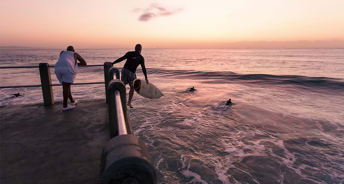 The LEARN 2 SURF Durban surf school is based at Addington Beach, just north of uShaka Marine World.