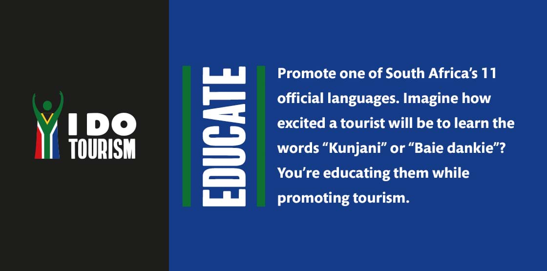 The We Do Tourism campaign is aimed at each and every South African! It is about each of us seeing the value of tourism, understanding how it impacts our lives and how we can all play a role in growing it. How?